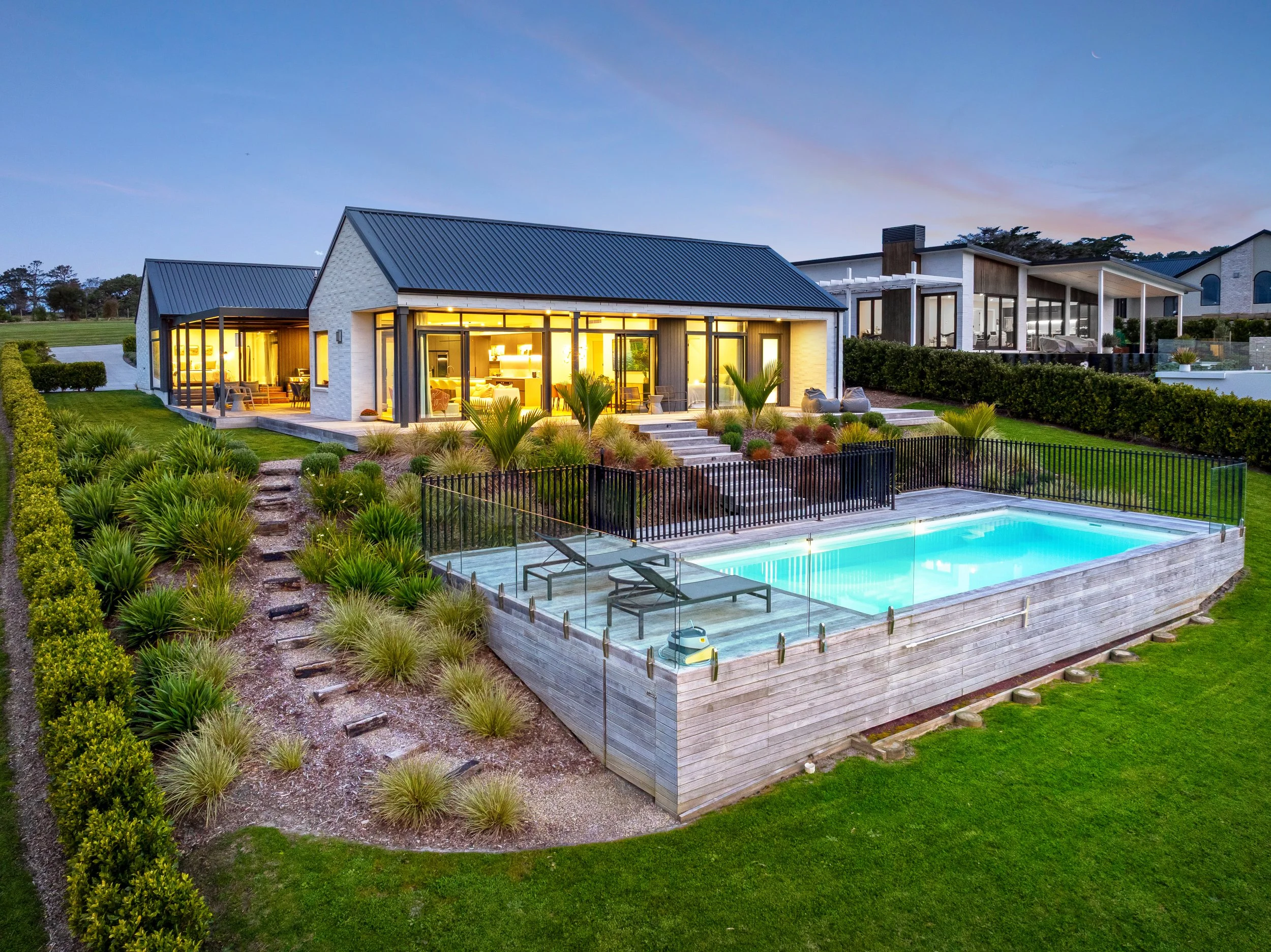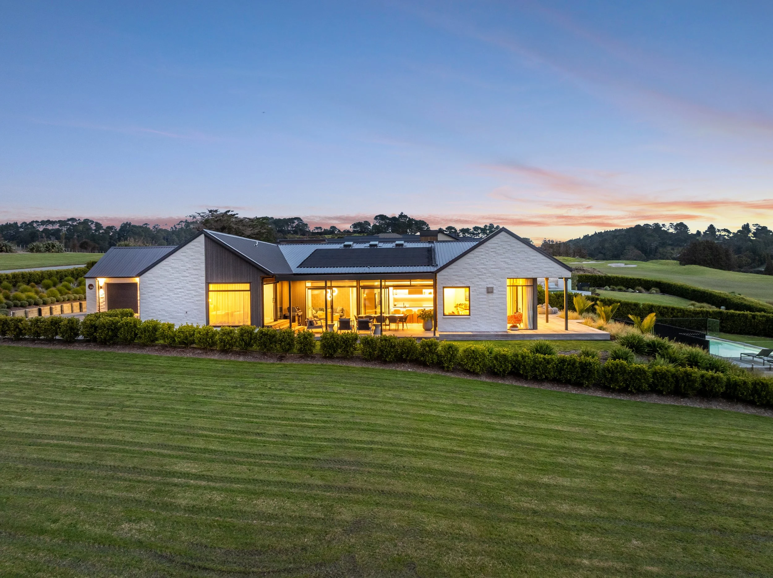 Set on the edge of the manicured fairways and rolling hills of Wainui Golf Course, this new build naturally takes its cues from the dramatic outlook - views that shift with the light and the seasons, offering a breathtaking backdrop for a truly special home.